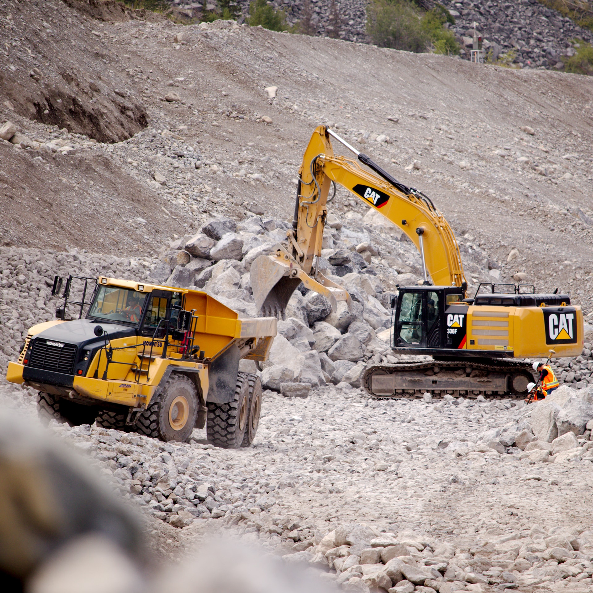 Riprap placement, slope protection, and erosion control for mining or civil slopes.