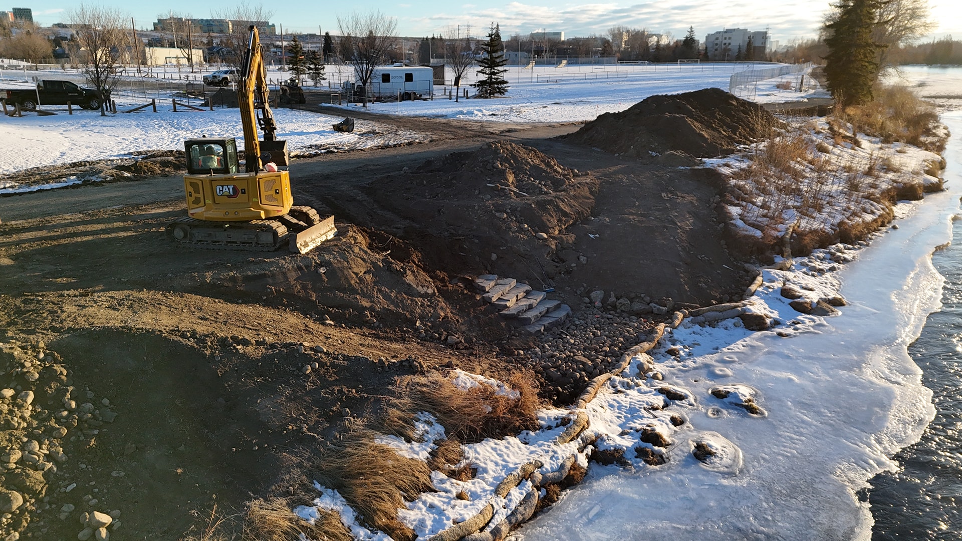 Devcon repaired an eroded section of the Bow River bank along the pedestrian pathway beside Shouldice Athletic Park. Severe erosion had damaged the pathway and nearby infrastructure, leading the City and ALSA to contract Devcon for reconstruction.